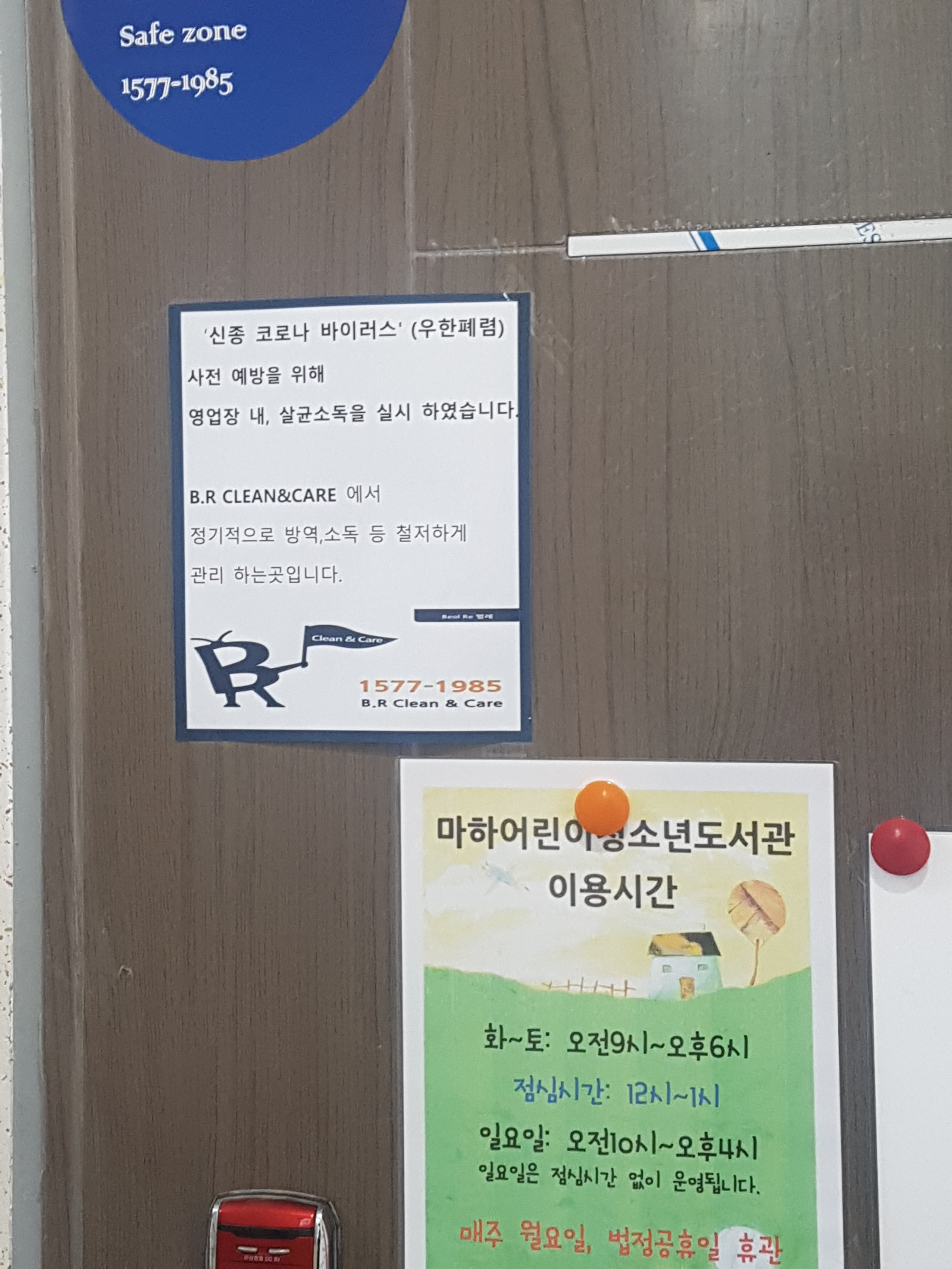 도서관 쉬는동안에, 쉬지않고 꾸준히 코로나 바이러스 예방을 위해 방역을 실시하였습니다~